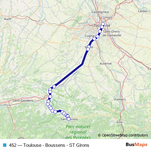 Click here to view the nearest 452 - Toulouse - Boussens - ST Girons bus stop.