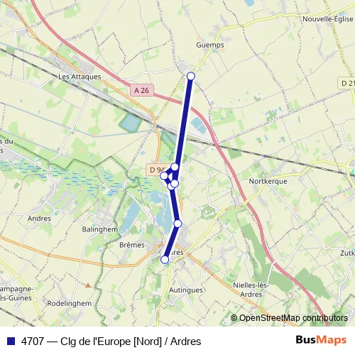 Click here to view the nearest 4707 - Clg de l'Europe [Nord] / Ardres bus stop.
