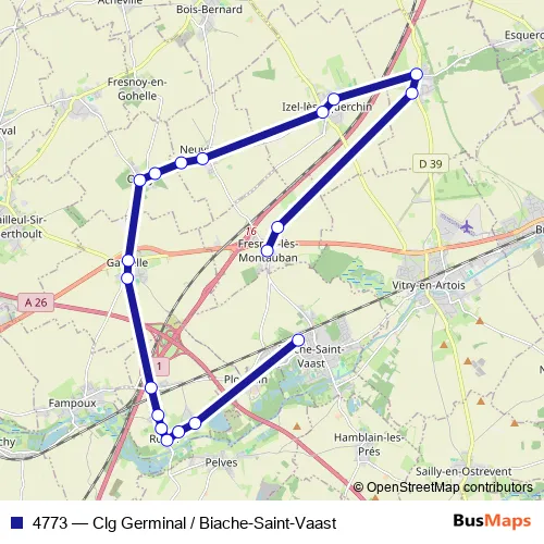 Click here to view the nearest 4773 - Clg Germinal / Biache-Saint-Vaast bus stop.