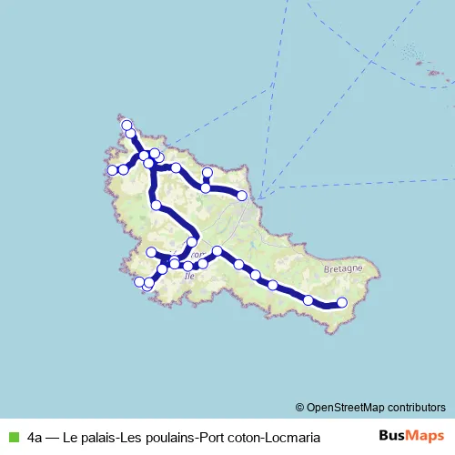 Centre. 4a (Le palais-Les poulains-Port coton-Locmaria) is operational during todos los días.
