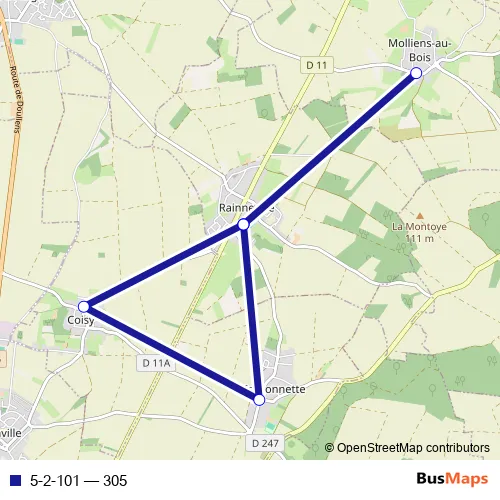The first stop of the 5-2-101 bus route is Rainneville - Ecole and the last stop is Rainneville - Ecole. 5-2-101 (305) is operational during todos los días.