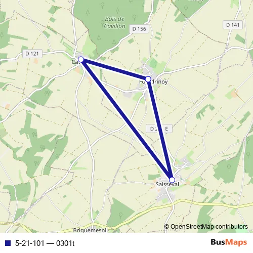 The first stop of the 5-21-101 bus route is Fourdrinoy - Ecole and the last stop is Fourdrinoy - Ecole. 5-21-101 (0301t) is operational during todos los días.
