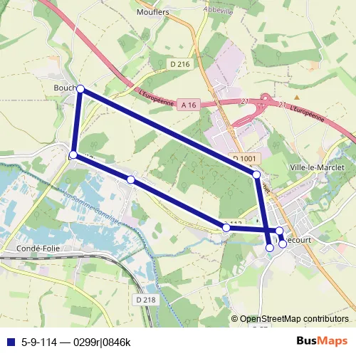 The first stop of the 5-9-114 bus route is Flixecourt - LP et collège Alfred Manessier and the last stop is Flixecourt - Ecole Hector Malot. 5-9-114 (0299r|0846k) is operational during todos los días.
