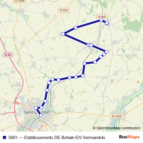 Bus 5001 - Etablissements DE Bohain EN Vermandois in Saint-Quentin: Stops & Timetable