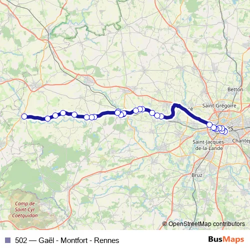 Bus 502 - Gaël - Montfort - Rennes in Rennes: Stops & Timetable