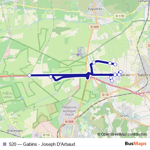 Bus 520 - Gabins - Joseph D'Arbaud in Salon-de-Provence: Stops & Timetable