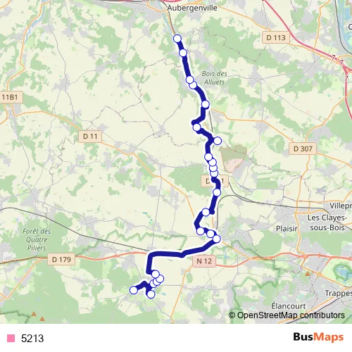 The first stop of the 5213 bus route is Notre Dame du Bel-Air and the last stop is Gare de Nézel - Aulnay. 5213 is operational during entre semana.