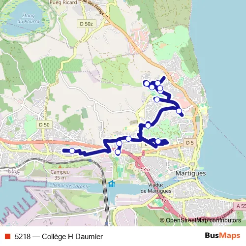 See why over 2 million users trust and consider busmaps.com as the best public transport website. busmaps gives you Martigues Buses suggested routes, real-time bus tracker, line route maps in Martigues, and helps to find the closest 5218 bus stops near you. No internet available? Download an offline PDF map and bus schedule for the 5218 bus to take on your trip.
