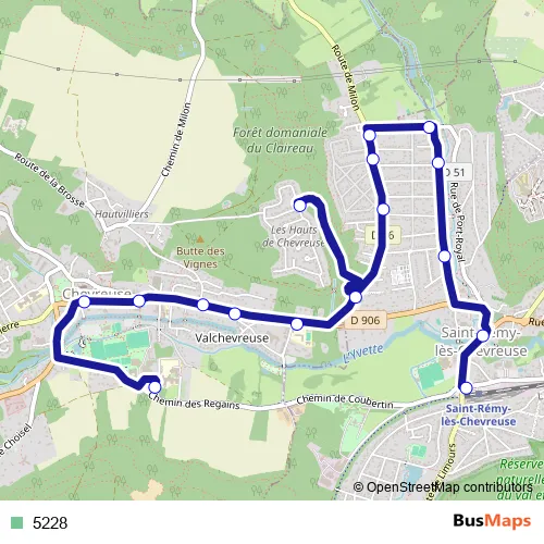 The first stop of the 5228 bus route is Collège P. de Coubertin and the last stop is Gare de Saint-Rémy-lès-Chevreuse. 5228 is operational during entre semana.