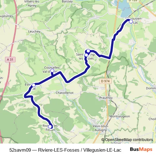 Click here to view the nearest 52savm09 - Riviere-LES-Fosses / Villegusien-LE-Lac bus stop.
