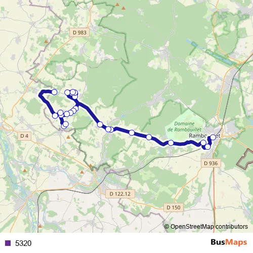 The first stop of the 5320 bus route is Gare de Rambouillet - Prud'homme and the last stop is La Gatine. 5320 is operational during entre semana.