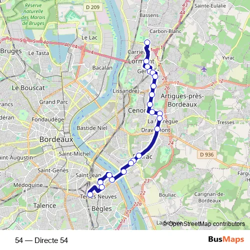 Bus 54 - Directe 54 in Bordeaux: Stops & Timetable