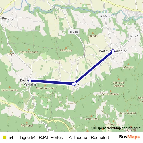 Bus 54 - Ligne 54 : R.P.I. Portes - LA Touche - Rochefort: Full Schedule in La Begude-de-Mazenc