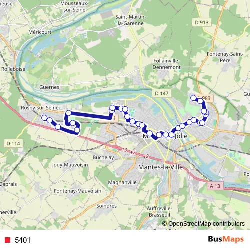 See why over 2 million users trust and consider busmaps.com as the best public transport website. busmaps gives you Mantes-la-Jolie Buses suggested routes, real-time bus tracker, line route maps in Mantes-la-Jolie, and helps to find the closest 5401 bus stops near you. No internet available? Download an offline PDF map and bus schedule for the 5401 bus to take on your trip.
