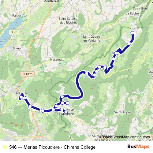 The first stop of the 546 bus route is Chirens, College and the last stop is Merlas, Picoudiere. 546 (Merlas Picoudiere - Chirens College) is operational during entre semana.