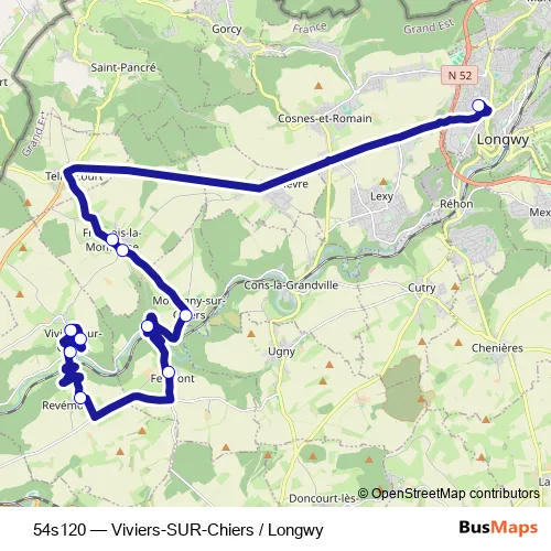 Click here to view the nearest 54s120 - Viviers-SUR-Chiers / Longwy bus stop.
