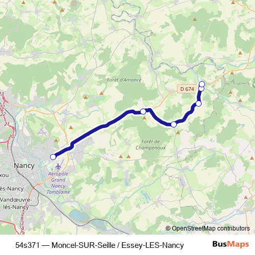 Bus 54s371 - Moncel-SUR-Seille / Essey-LES-Nancy in Moncel-sur-Seille: Stops & Timetable