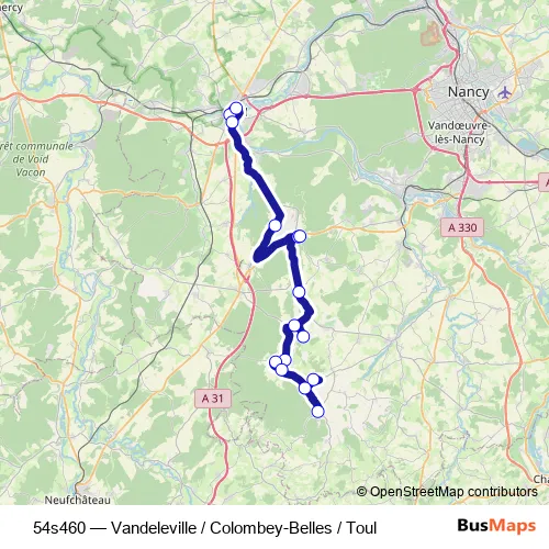 Click here to view the nearest 54s460 - Vandeleville / Colombey-Belles / Toul bus stop.