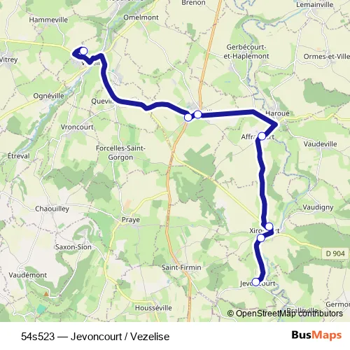 Click here to view the nearest 54s523 - Jevoncourt / Vezelise bus stop.