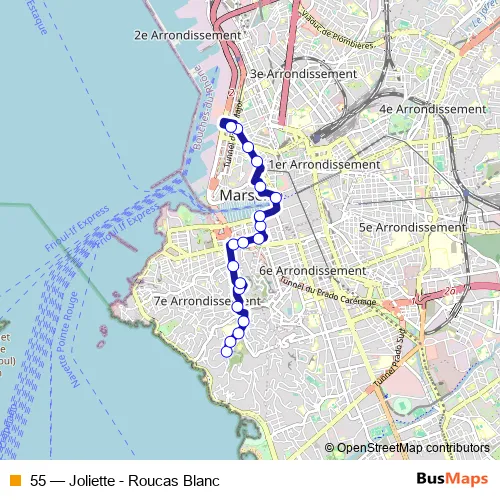 See why over 2 million users trust and consider busmaps.com as the best public transport website. busmaps gives you Marseille Buses suggested routes, real-time bus tracker, line route maps in Marseille, and helps to find the closest 55 bus stops near you. No internet available? Download an offline PDF map and bus schedule for the 55 bus to take on your trip.