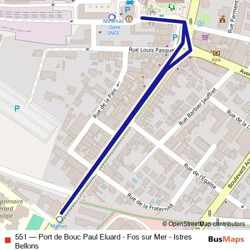 Click here to view the nearest 551 - Port de Bouc Paul Eluard - Fos sur Mer - Istres Bellons bus stop.