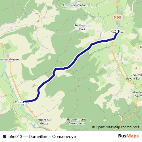 The first stop of the 55d013 bus route is Consenvoye - Rd964 and the last stop is Damvillers - Ecoles. 55d013 (Damvillers - Consenvoye) is operational during entre semana.
