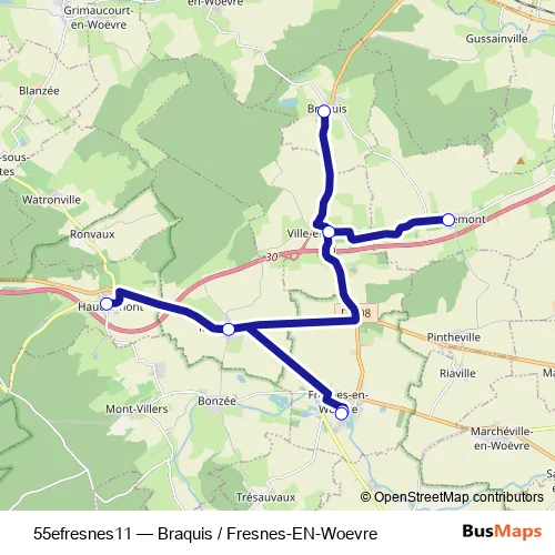 Click here to view the nearest 55efresnes11 - Braquis / Fresnes-EN-Woevre bus stop.