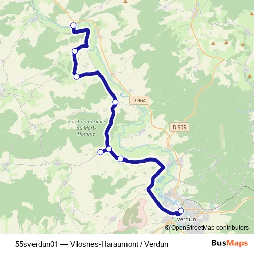 The first stop of the 55sverdun01 bus route is Verdun - Gare Multimodale and the last stop is Vilosnes-Haraumont - Vilosnes - Lavoir. 55sverdun01 (Vilosnes-Haraumont / Verdun) is operational during entre semana.