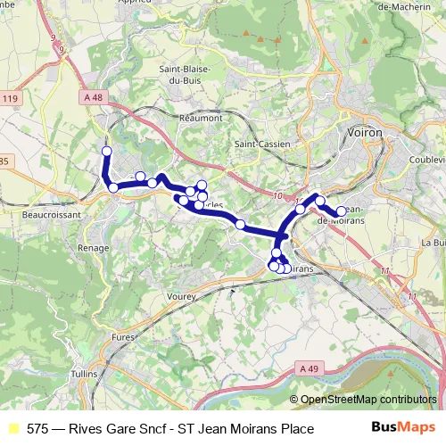 Click here to view the nearest 575 - Rives Gare Sncf - ST Jean Moirans Place bus stop.