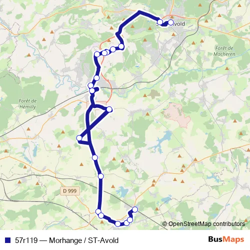 The first stop of the 57r119 bus route is Saint-Avold - Gare Routiere and the last stop is Morhange - Gare. 57r119 (Morhange / ST-Avold) is operational during entre semana.