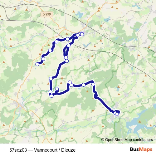 The first stop of the 57sdz03 bus route is Dieuze - Place Du Marche and the last stop is Vannecourt - Eglise. 57sdz03 (Vannecourt / Dieuze) is operational during entre semana.