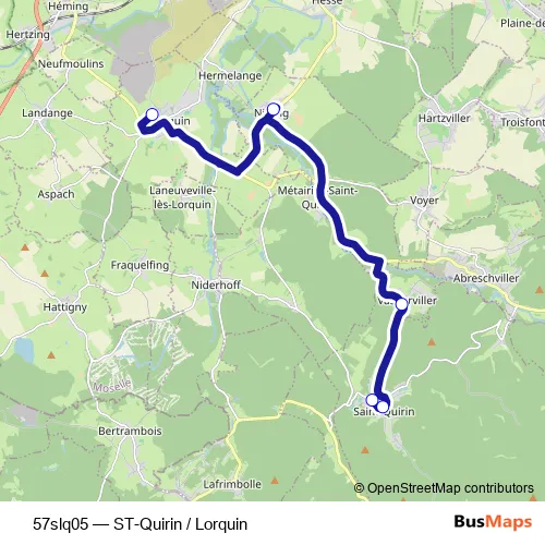 See why over 2 million users trust and consider busmaps.com as the best public transport website. busmaps gives you Saint-Quirin Buses suggested routes, real-time bus tracker, line route maps in Saint-Quirin, and helps to find the closest 57slq05 bus stops near you. No internet available? Download an offline PDF map and bus schedule for the 57slq05 bus to take on your trip.