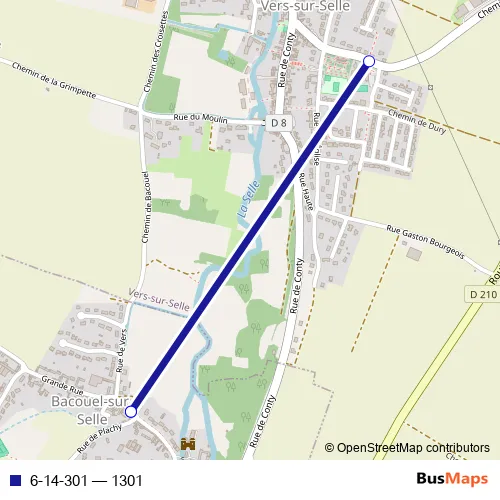 The first stop of the 6-14-301 bus route is Bacouel-SUR-Selle - Ecole and the last stop is Bacouel-SUR-Selle - Ecole. 6-14-301 (1301) is operational during todos los días.