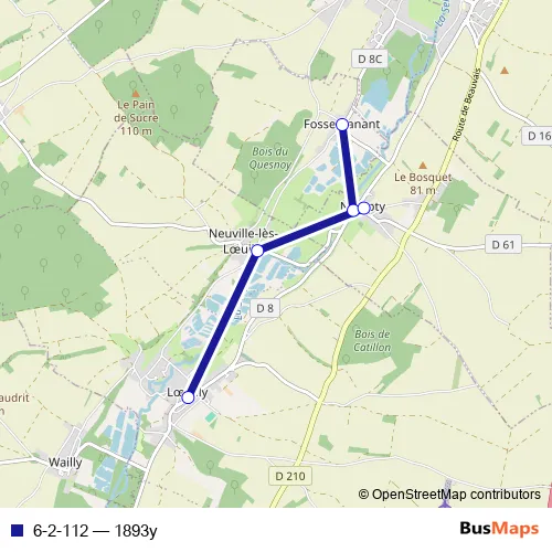 The first stop of the 6-2-112 bus route is Fossemanant - Eglise and the last stop is