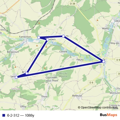 The first stop of the 6-2-312 bus route is Conty - Ecole Germain Alix and the last stop is Conty - Ecole Germain Alix. 6-2-312 (1088y) is operational during todos los días.