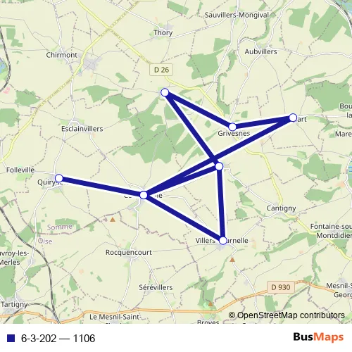 The first stop of the 6-3-202 bus route is Coullemelle - Ecole maternelle and the last stop is Grivesnes - Le Plessier. 6-3-202 (1106) is operational during todos los días.