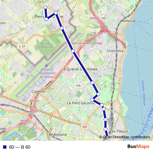 | Grand-Saconnex, Tunnel Routier | 07:33 | 07:49 | 08:02 | 08:16 | 08:30 | 08:45 | 09:11 | 09:31 | 09:55 | 10:17 | 10:40 | 11:04 | 11:28 | 11:52 | 12:16 | 12:40 | 13:04 | 13:28 | 13:52 | 14:16 | 14:40 | 15:04 | 15:28 | 15:54 | 16:21 | 16:42 | 16:57 | 17:11 | 17:22 | 17:37 | 17:55 | 18:09 | 18:21 | 18:35 | 18:50 | 19:12 | 19:24 | 19:37 | 19:50 | 20:13 |