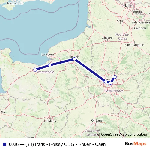 Click here to view the nearest 6036 - (Y1) Paris - Roissy CDG - Rouen - Caen bus stop.