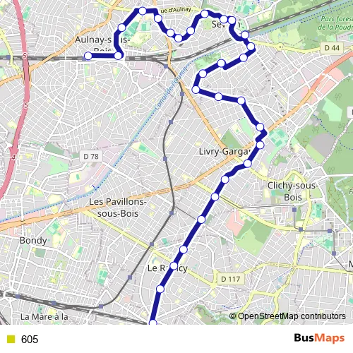 See why over 2 million users trust and consider busmaps.com as the best public transport website. busmaps gives you Bobigny Buses suggested routes, real-time bus tracker, line route maps in Bobigny, and helps to find the closest 605 bus stops near you. No internet available? Download an offline PDF map and bus schedule for the 605 bus to take on your trip.