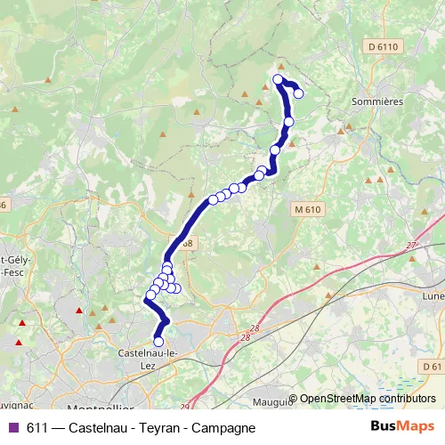 Bus 611 - Castelnau - Teyran - Campagne in Saint-Drezery: Stops & Timetable