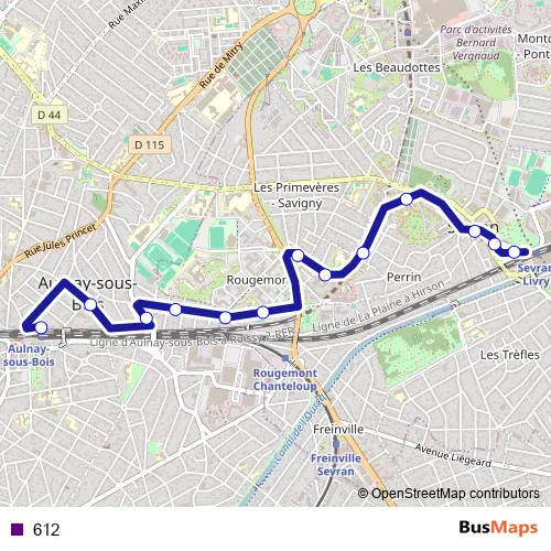 See why over 2 million users trust and consider busmaps.com as the best public transport website. busmaps gives you Bobigny Buses suggested routes, real-time bus tracker, line route maps in Bobigny, and helps to find the closest 612 bus stops near you. No internet available? Download an offline PDF map and bus schedule for the 612 bus to take on your trip.