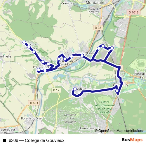 See why over 2 million users trust and consider busmaps.com as the best public transport website. busmaps gives you Precy-sur-Oise Buses suggested routes, real-time bus tracker, line route maps in Precy-sur-Oise, and helps to find the closest 6206 bus stops near you. No internet available? Download an offline PDF map and bus schedule for the 6206 bus to take on your trip.