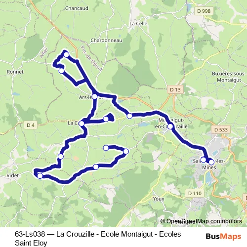 Click here to view the nearest 63-Ls038 - La Crouzille - Ecole Montaigut - Ecoles Saint Eloy bus stop.