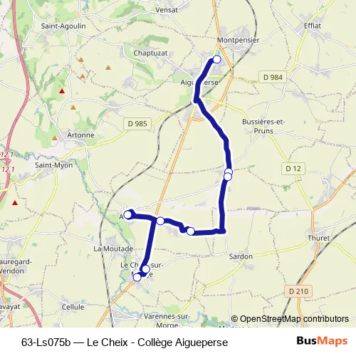 See why over 2 million users trust and consider busmaps.com as the best public transport website. busmaps gives you Riom Buses suggested routes, real-time bus tracker, line route maps in Riom, and helps to find the closest 63-Ls075b bus stops near you. No internet available? Download an offline PDF map and bus schedule for the 63-Ls075b bus to take on your trip.