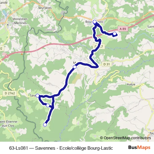 Bus 63-Ls081 - Savennes - Ecole/collège Bourg-Lastic: Full Schedule in Messeix