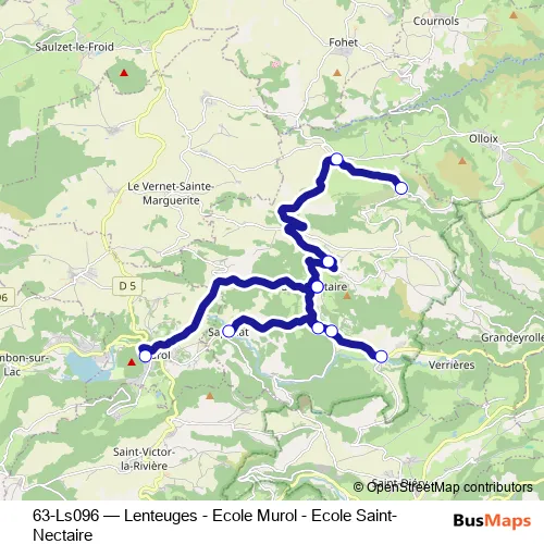 Click here to view the nearest 63-Ls096 - Lenteuges - Ecole Murol - Ecole Saint-Nectaire bus stop.