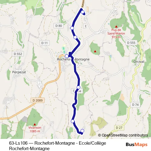 See why over 2 million users trust and consider busmaps.com as the best public transport website. busmaps gives you Rochefort-Montagne Buses suggested routes, real-time bus tracker, line route maps in Rochefort-Montagne, and helps to find the closest 63-Ls106 bus stops near you. No internet available? Download an offline PDF map and bus schedule for the 63-Ls106 bus to take on your trip.
