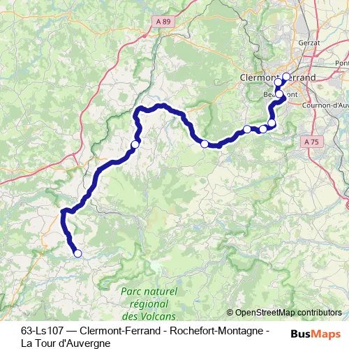 Click here to view the nearest 63-Ls107 - Clermont-Ferrand - Rochefort-Montagne - La Tour d'Auvergne bus stop.