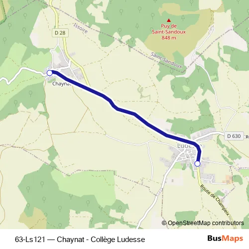 The first stop of the 63-Ls121 bus route is Chaynat and the last stop is Ecole Ludesse. 63-Ls121 (Chaynat - Collège Ludesse) is operational during todos los días.