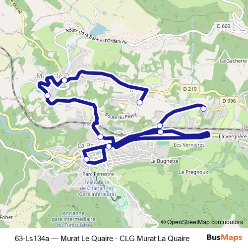 The first stop of the 63-Ls134a bus route is Collège de Murat le Quaire and the last stop is Résidence Auvergne. 63-Ls134a (Murat Le Quaire - CLG Murat La Quaire) is operational during entre semana.